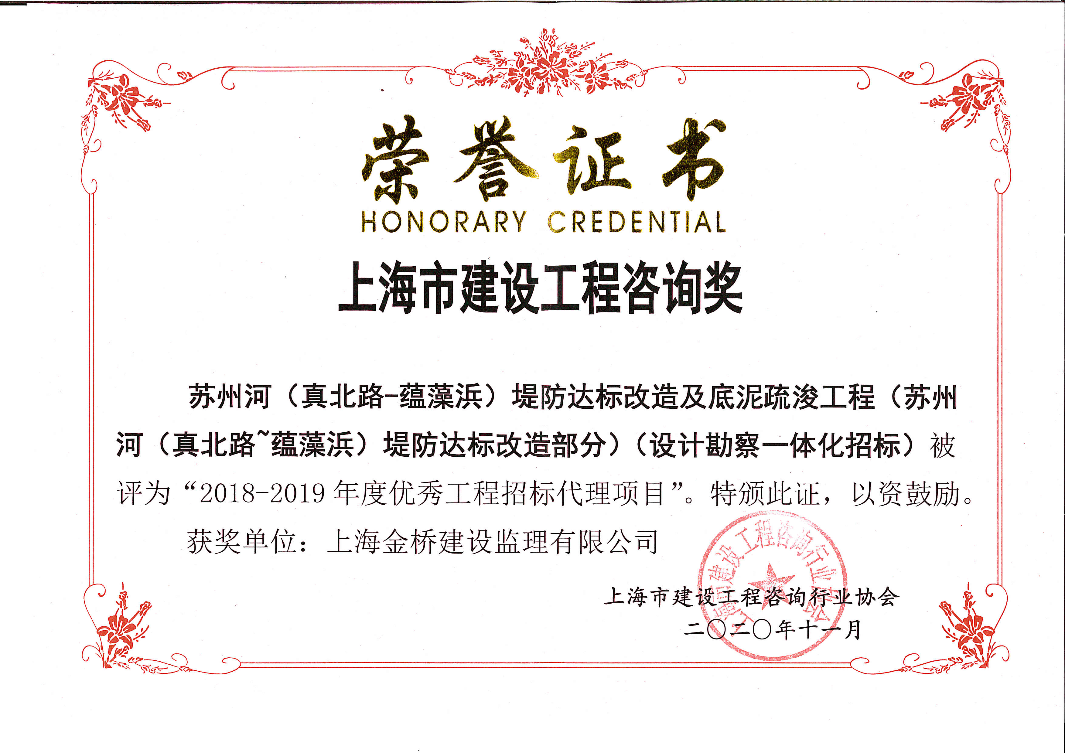 苏州河(真北路-蕴藻浜)堤防改造项目获上海市优秀招标代理项目