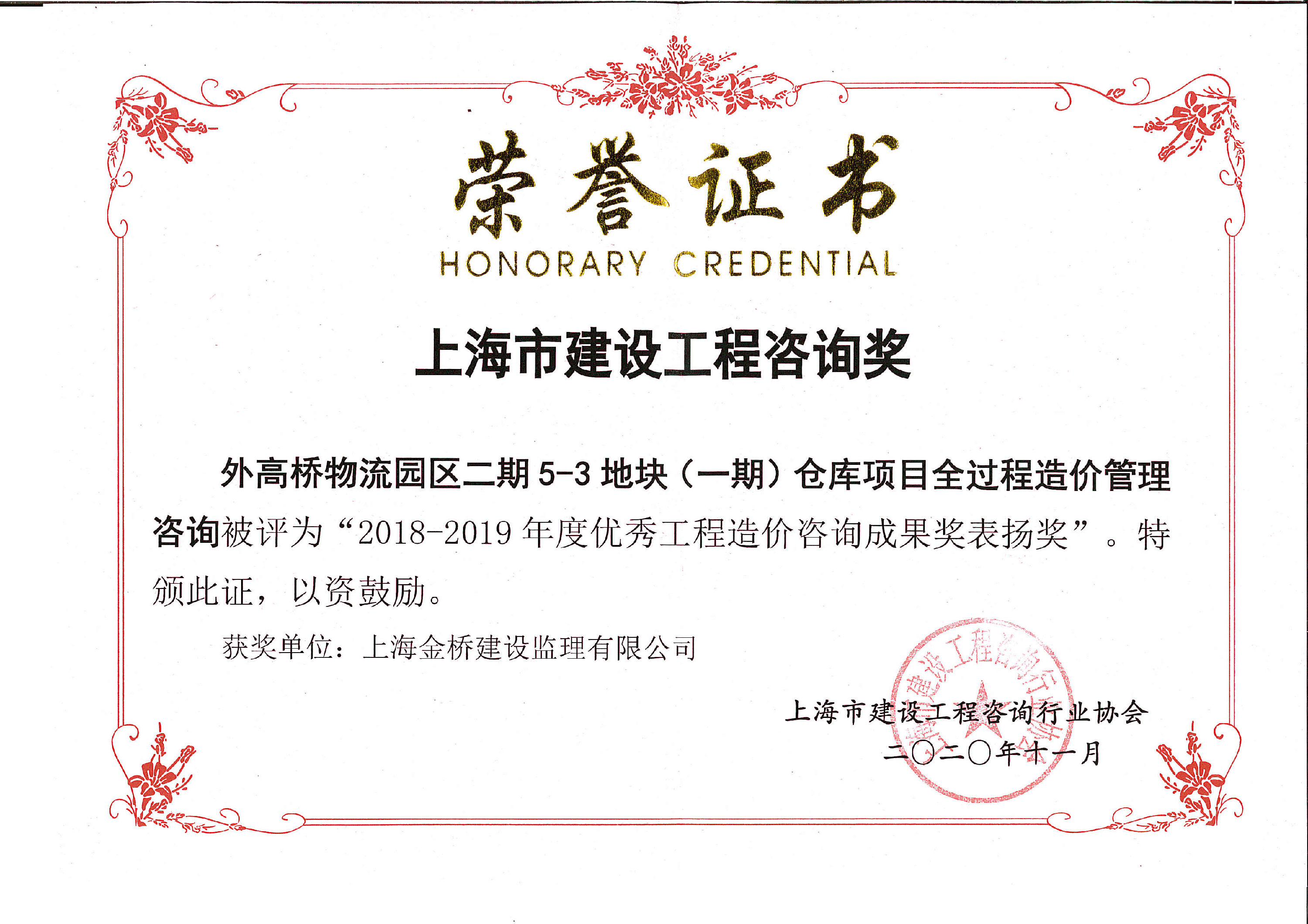 外高桥物流园区二期全过程造价获得2018-2019年获上海市...